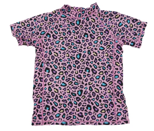 Ružovo-čierno-azurovo-žlto-fialové vzorované UV tričko