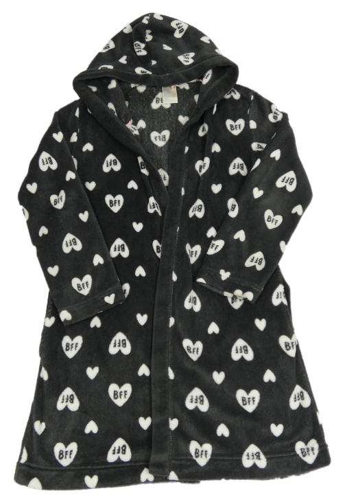 Antracitový plyšový župan so srdiečkami a nápismi a kapucňou H&M