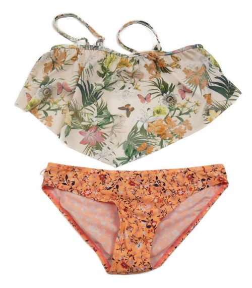 Oranžovo-smetanovo-zelené kvetované dvoudílné plavky