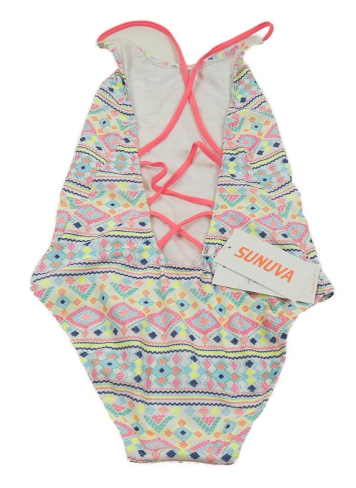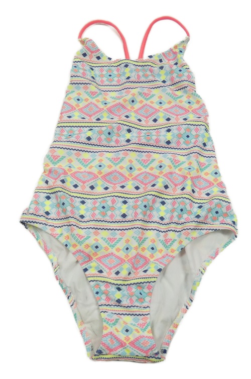 Nové - Bielo-farebné vzorované jednodielne plavky
