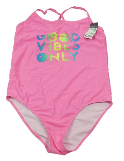 Nové - Neónově ružové jednodielne plavky s nápisom so smajlíkmi Primark