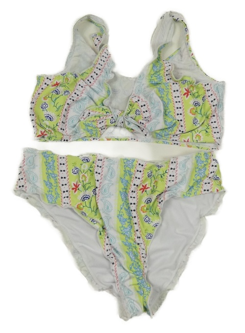 Bielo-zelené vzorované dvoudílné plavky shein