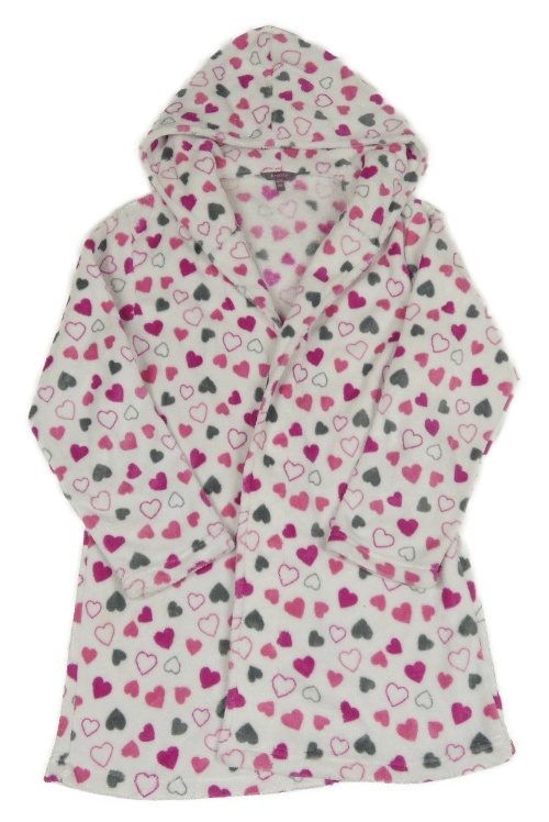 Bielo-ružový chlpatý župan so srdiečkami a kapucňou