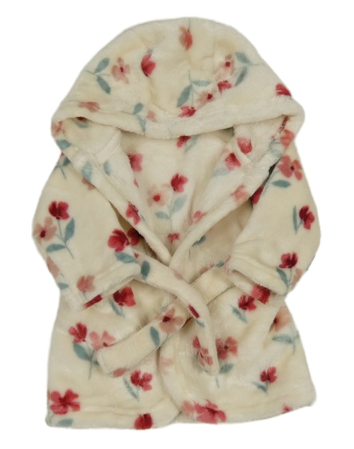 Smotanový kvetovaný plyšový župan s kapucňou George