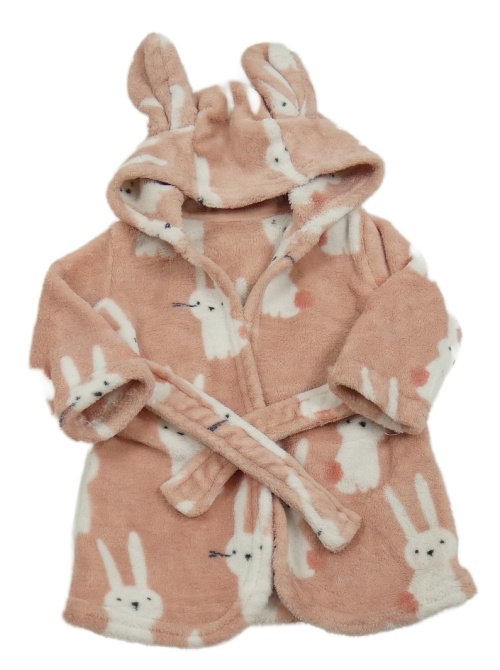 Ružový chlpatý župan s králíčky a kapucňou George