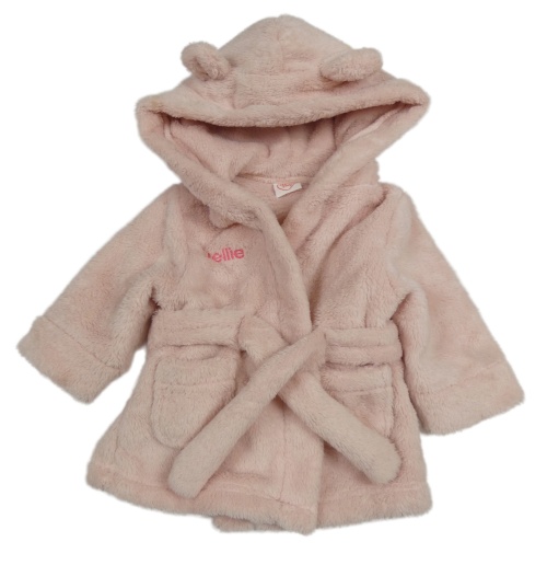 Svetloružový chlpatý župan s nápisom a kapucňou