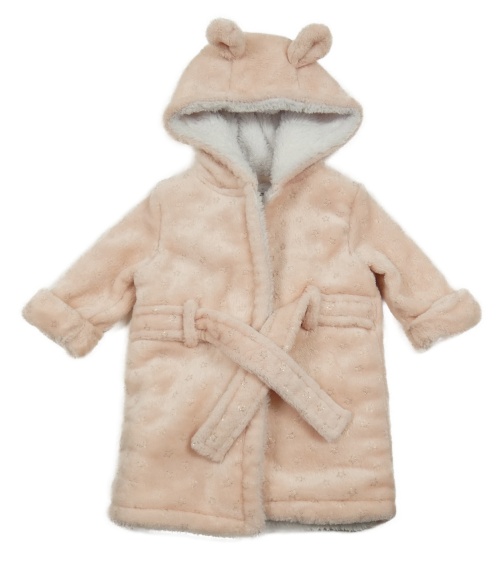 Broskvový chlpatý zateplený župan s hviezdičkami a kapucňou F&F