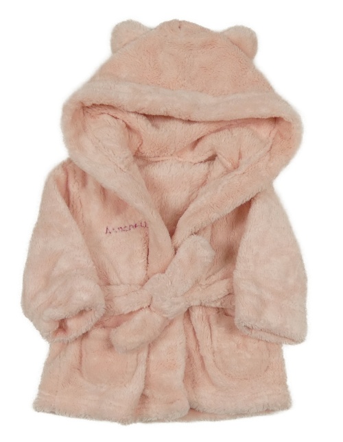 Svetloružový chlpatý župan s nápisom a kapucňou