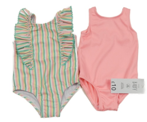 Nové - 2 set plavky - ružové + bielo-zeleno-ružové pruhované plavky