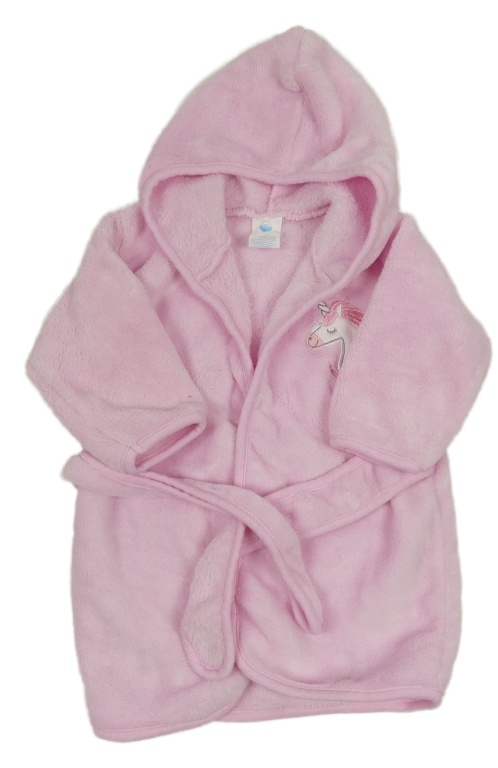 Ružový chlpatý župan s jednorožcom a kapucňou