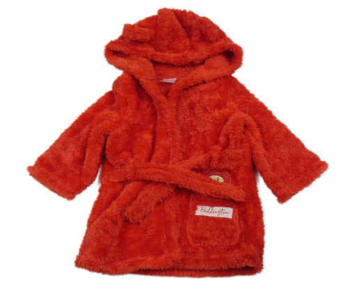 Červený chlpatý župan s Paddingtonem a kapucňou