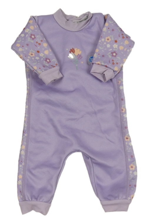 Svetlofialová neoprenová kombinéza s tulipánky a nášivkou Splash