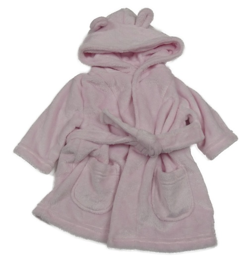 Nové - svetloružový plyšový župan s kapucňou s uškami NURSERY TIME