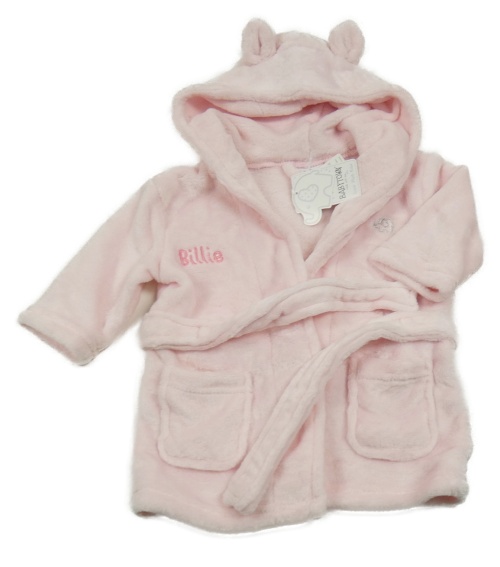 Nové - Svetloružový plyšový župan so nápisom a kapucňou