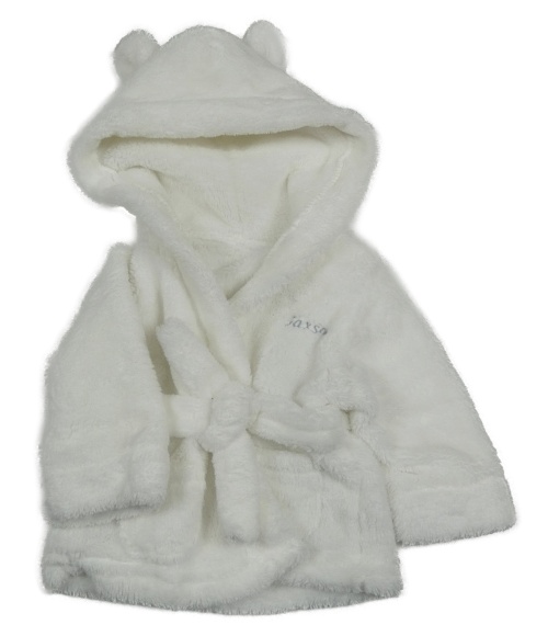 Biely plyšový župan s kapucňou s uškami