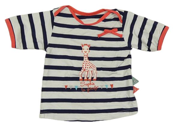 Bielo-tmavomodré pruhované UV tričko s žirafou a mašlou