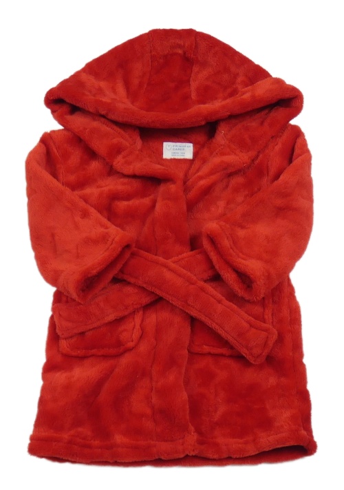 Červený chlpatý župan s opaskom a kapucňou Primark