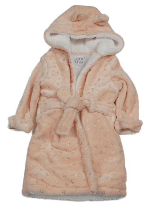 Svetloružový chlpatý zateplený župan s hviezdičkami a kapucňou F&F)