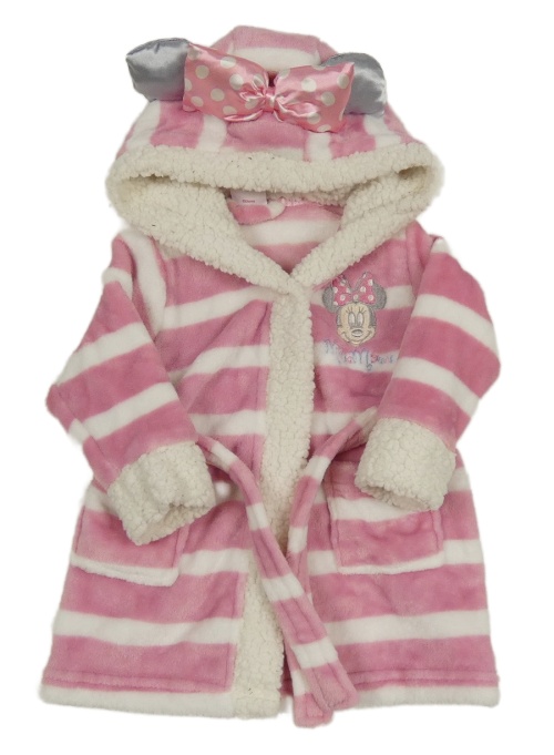 Ružovo-biely pruhovaný plyšový župan s Minnie a kapucňou Disney