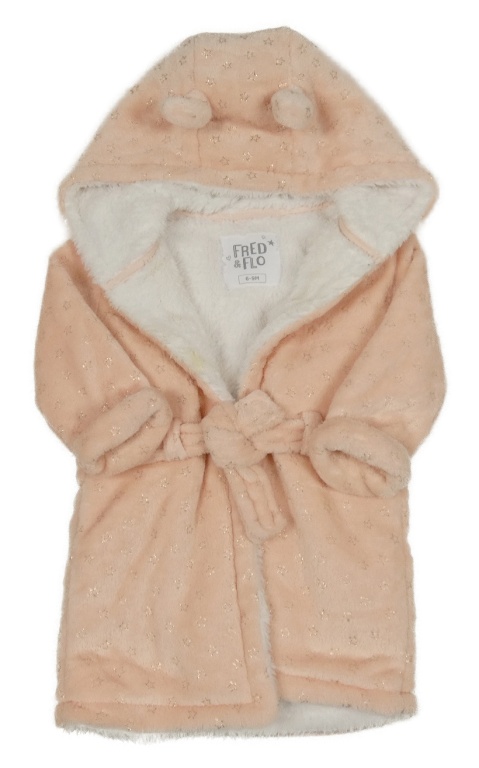 Broskvový plyšový zateplený župan s hviezdičkami a kapucňou s uškami F&F