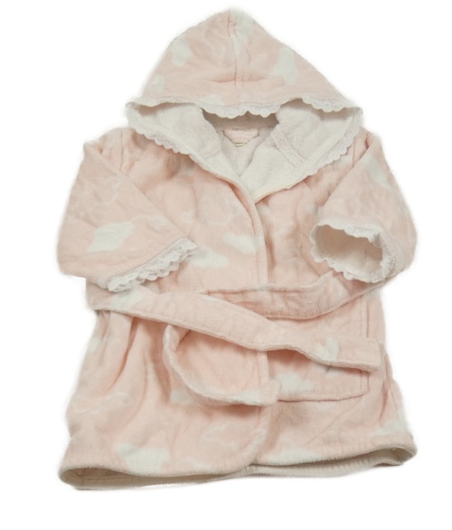 Svetloružový froté župan s obláčiky a volániky s madeirou Benetton