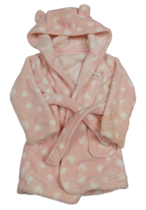 Ružový vzorovaný plyšový župan s nápisom a kapucňou George