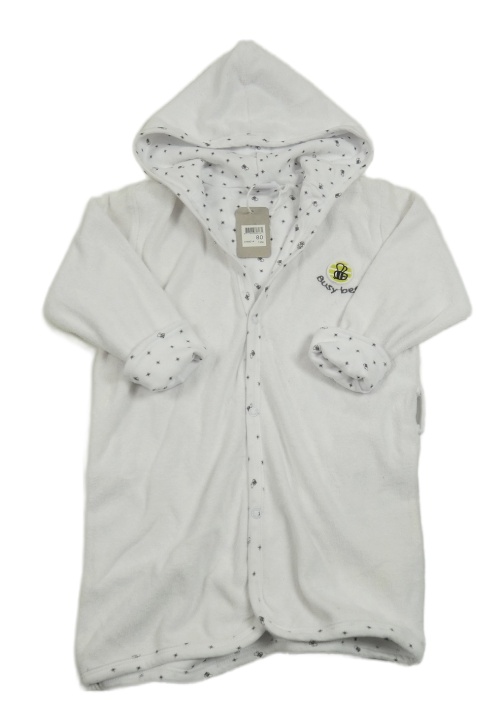 Nové - biely froté podšitý župan s nášivkou a kapucňou