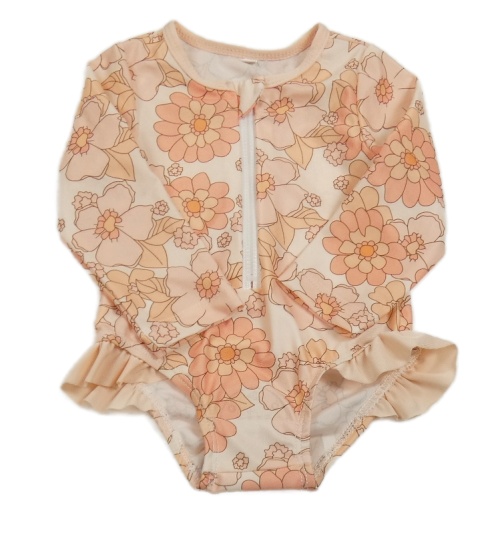 Nové - světlebroskvové plavky s kvetmi a volánikmi a UV ochranou Milediiy