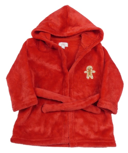 Červený plyšový župan s perníčkem a kapucňou FESTIVE FUN
