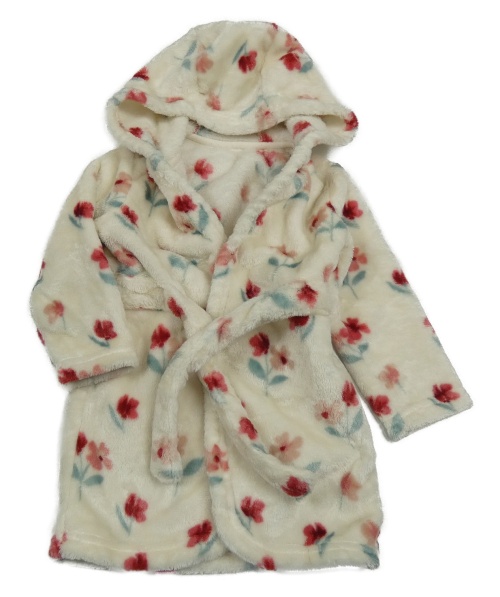 Smetanovo-zeleno-ružový kvetovaný plyšový župan s kapucňou George