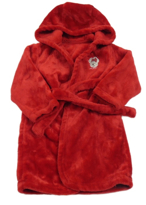 Červený chlpatý župan s Minnie a kapucňou