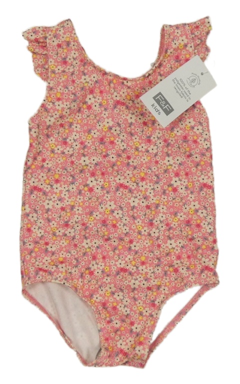 Nové - ružové kvietkovane jednodielne plavky s volánikmi F&F