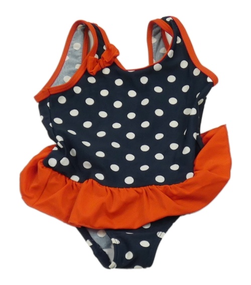 Tmavomodro-bielo-červené bodkovaná é jednodielne plavky s mašlou a volánikom Sports