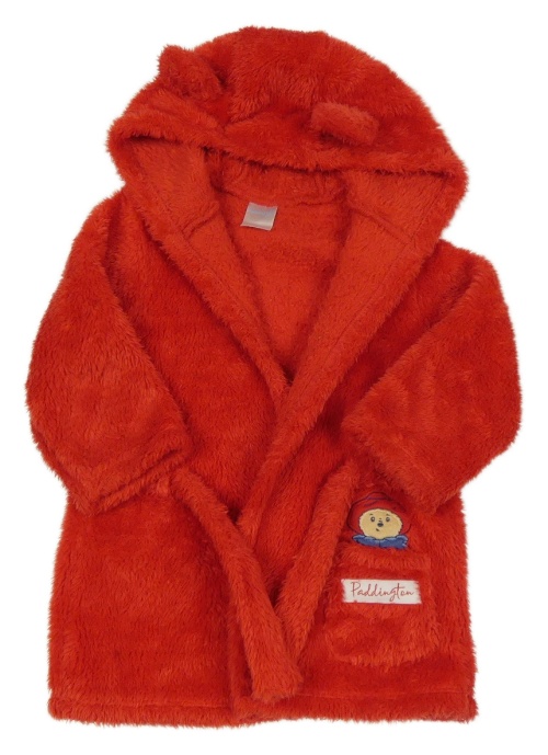 Červený chlpatý župan s Paddingtonem a kapucňou