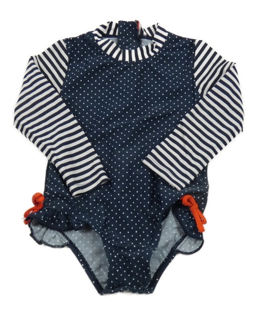 Tmavomodro-biele jednodielne UV plavky s bodkami a pruhmi
