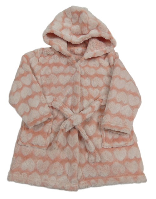 Ružový chlpatý župan so srdiečkami a kapucňou