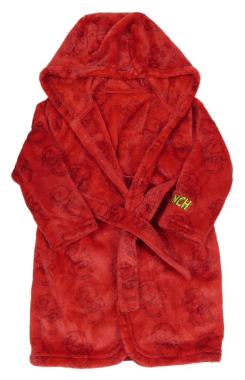 Červený plyšový vianočný župan s Grinchem a kapucňou George