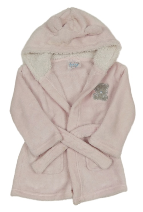 Svetloružový plyšový župan s medvedíkom a kapucí - Tiny tatty teddy