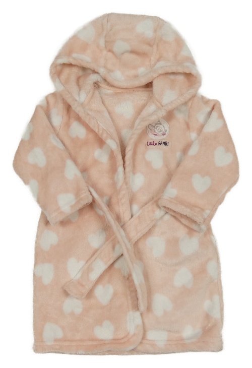 Svetloružový chlpatý župan s Bambim, srdiečkami a kapucňou George