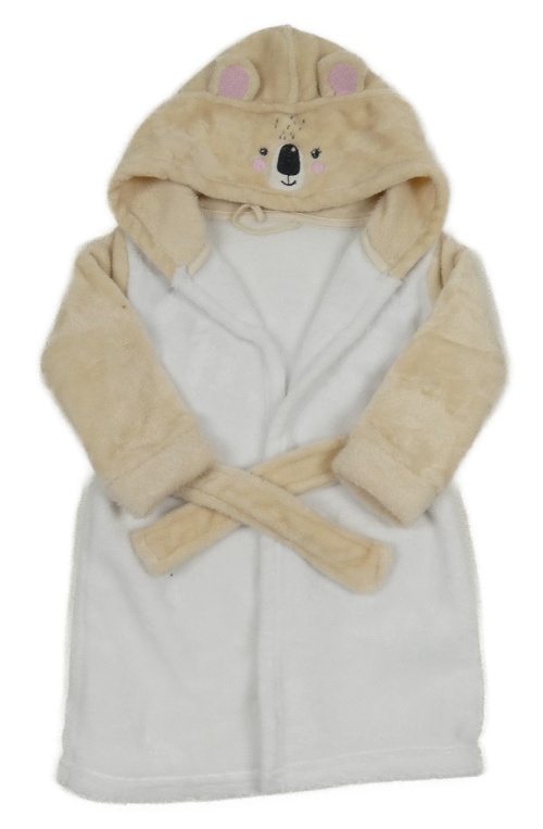 Bielo-béžový chlpatý župan s kapucí - medvěď Orsolino