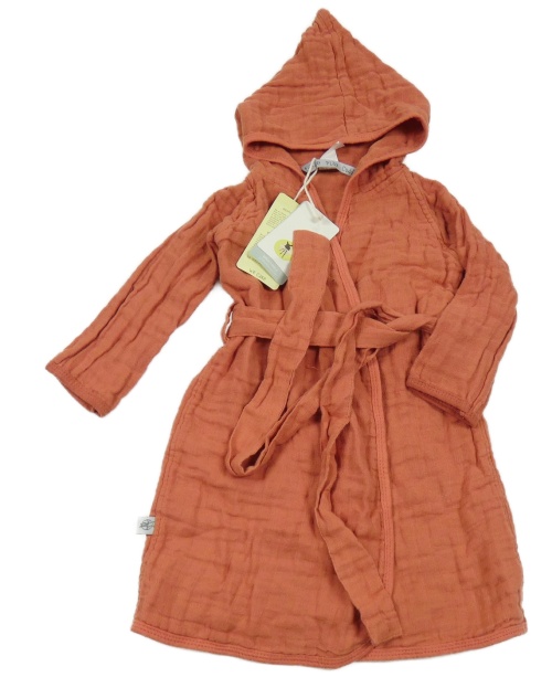 Nové - tehlový mušelínový župan s kapucňou