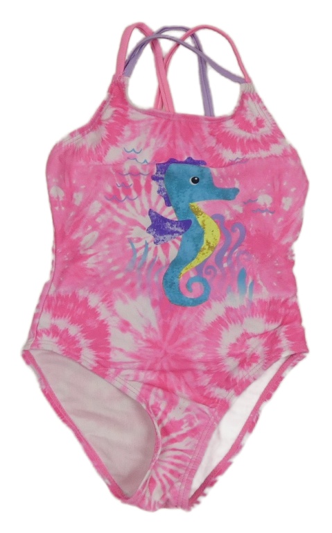Ružové batikované jednodielne plavky s mořským koníkem