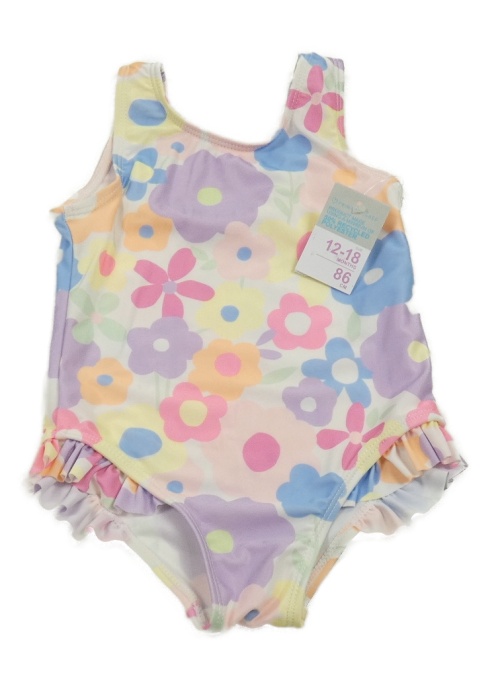 Nové - Bielo-farebné kvetované jednodielne plavky Primark