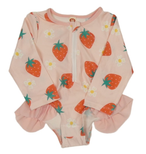 Svetloružové UV plavky s jahodami a volánikmi