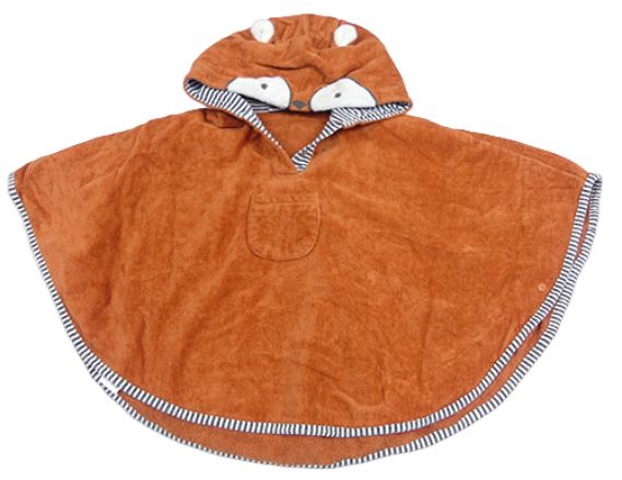 Hrdzavé sametovo/froté osuškové pončo s kapucí - líška John Lewis