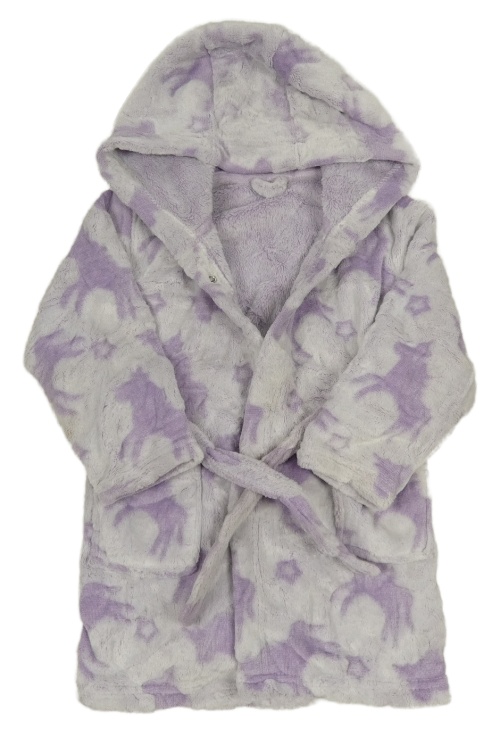 Svetlofialový chlpatý župan s jednorožcami a kapucňou Matalan