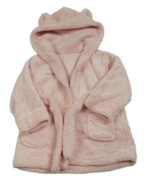 Svetloružový chlpatý župan s nápisom a kapucňou