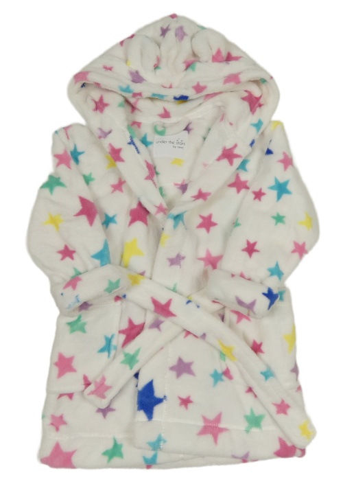 Biely plyšový župan s farebnými hviezdičkami a kapucňou s uškami Next