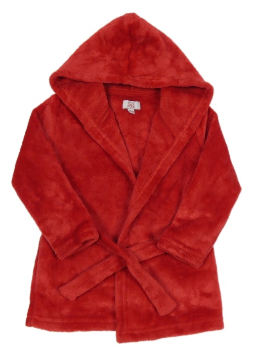 Červený chlpatý župan s kapucňou