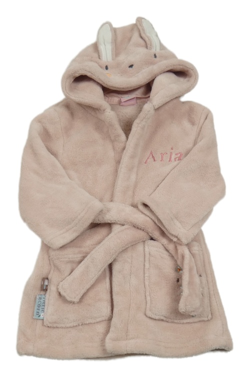 Svetloružový chlpatý župan s nápisom a kapucňou